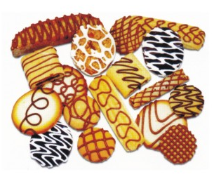 該機專門用于餅干殛巧克力表面飾巧克力花紋,且由多種花紋可供選擇(圖示花紋僅供參考)。