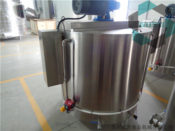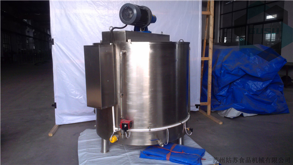 在巧克力生產過程中,巧克力漿料從精磨機或球磨機里輸出,以便精磨機或球磨機連續磨料;保溫缸主要用于精磨后的巧克力漿料的保溫貯存、粗精煉,以滿足巧克力生產的工藝要求,便于巧克力糖果生產線的連續化生產。